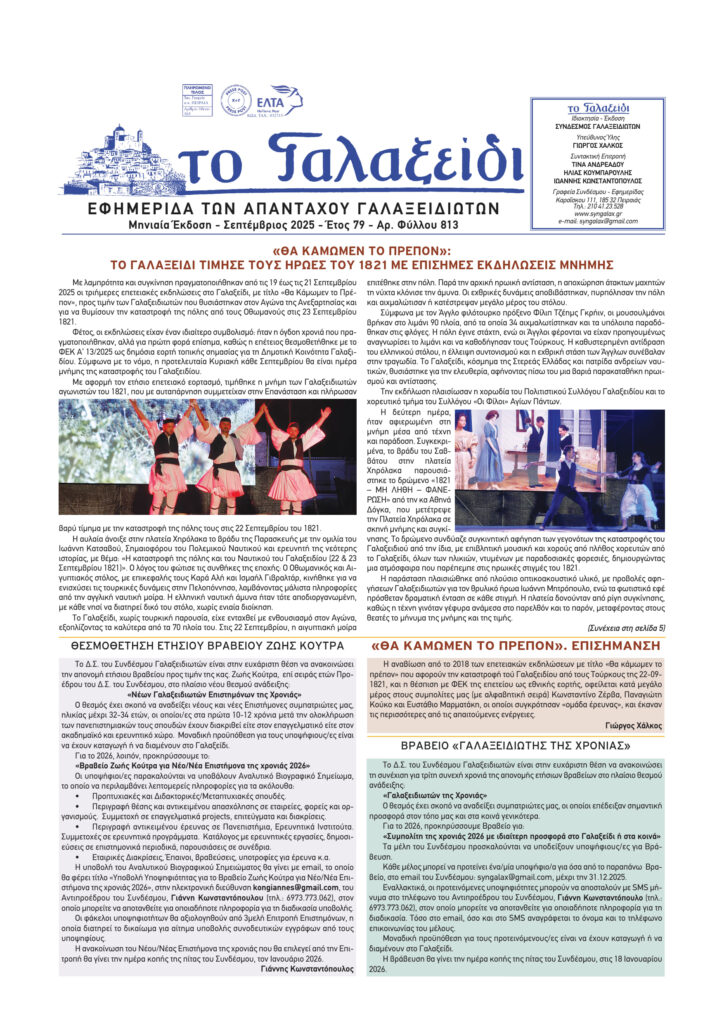 Κυκλοφόρησε το νέο φύλλο της εφημερίδας “το Γαλαξείδι” – Σεπτέμβριος 2025 (φύλλο 813)